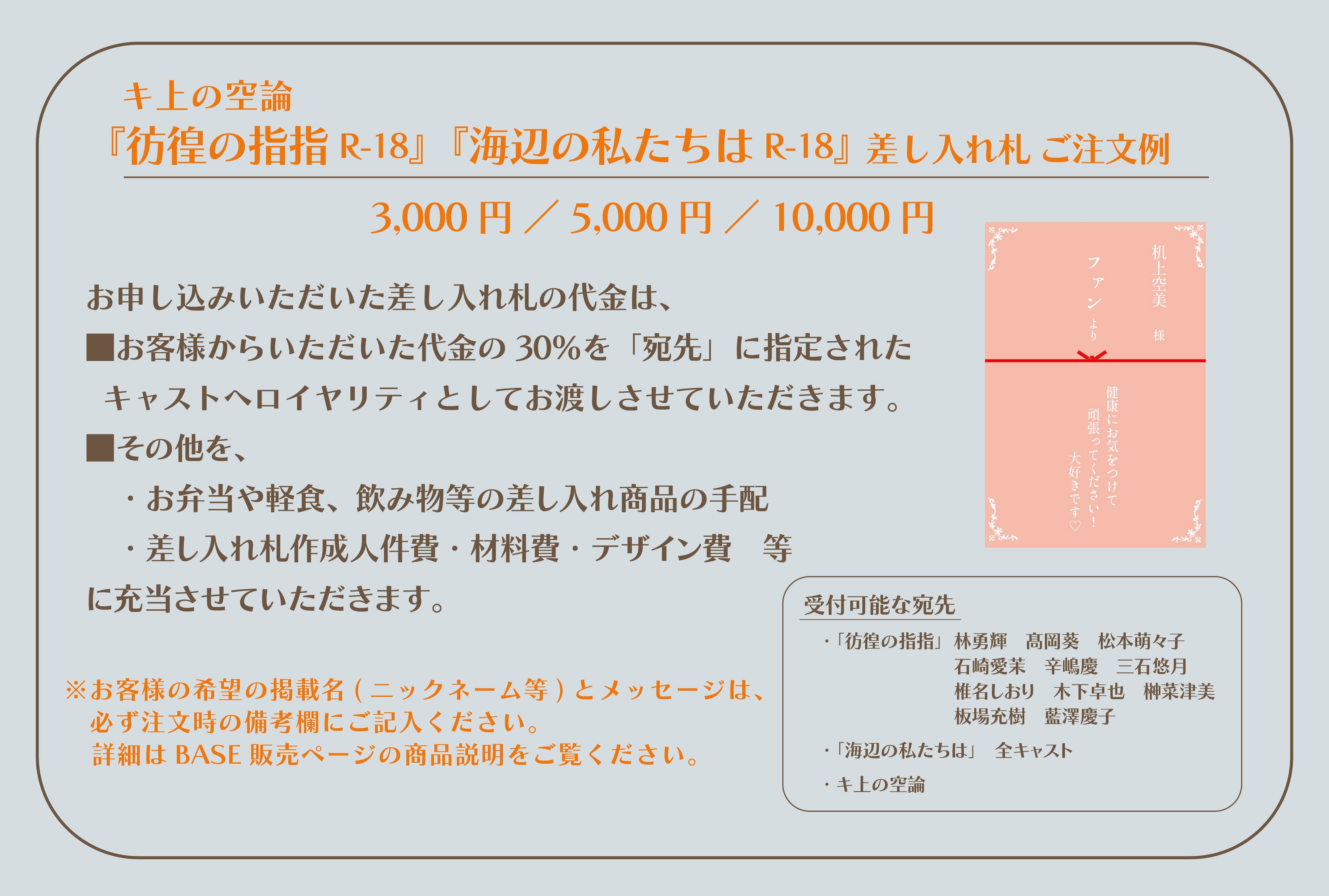本公演では、差し入れ札を販売いたします!