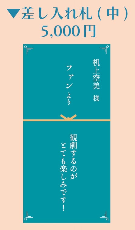 ※ご購入頂いた札はSNSに写真で掲載される場合がございます。掲載不可を希望の方は備考欄にご記入ください。その際は、ロビーではなく楽屋に掲示し写真NGとさせて頂きます。